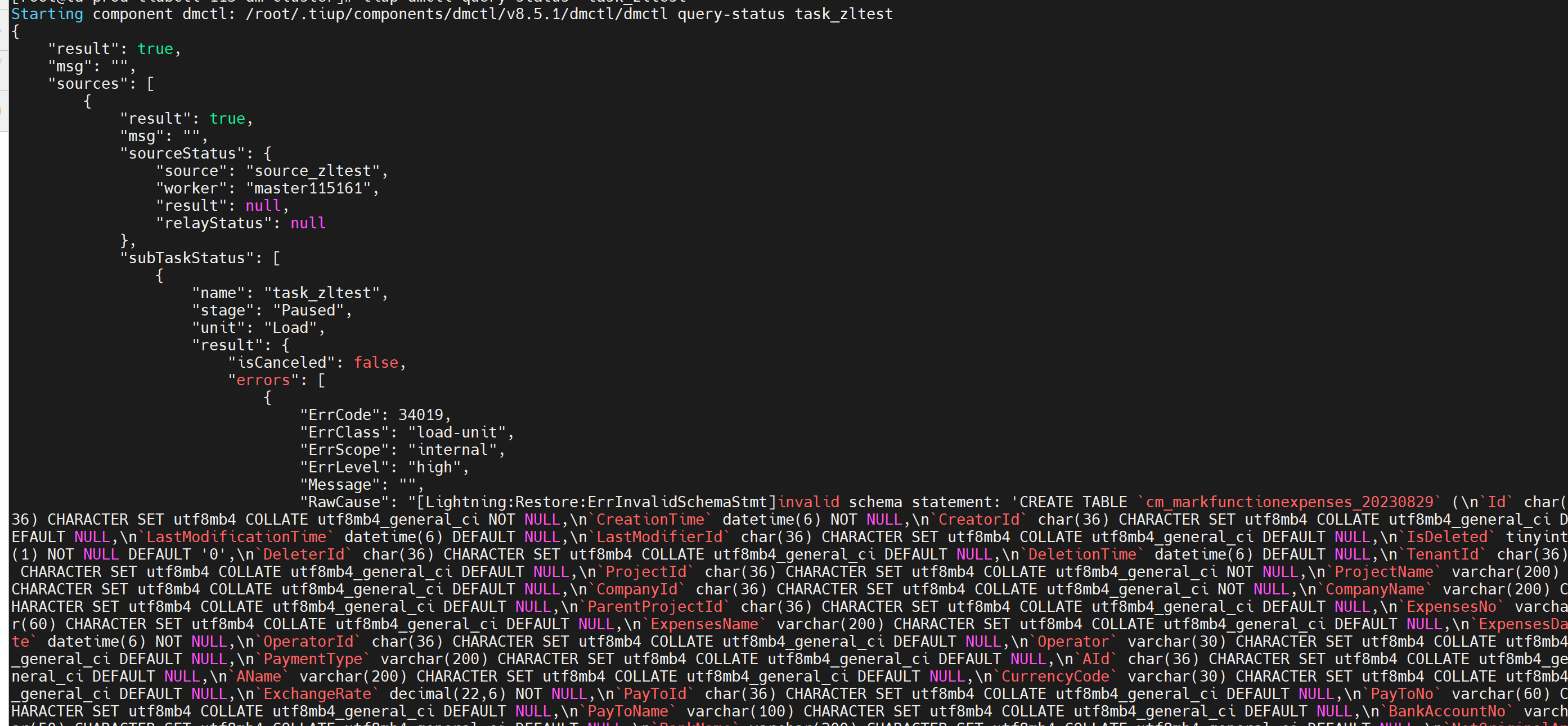 通过DM同步上游mysql8.0的数据到下游TIDB,直接全量+增量(ALL)的方式导入的,发现在Load阶段报错了