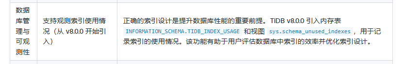 起因是发现有些表有十几个索引,有些status字段也创建了,想到mysql有类似的performance_schema.table_io_waits_summary_by_index_usage,就像看看tidb有没有,但是找了一圈没找见
