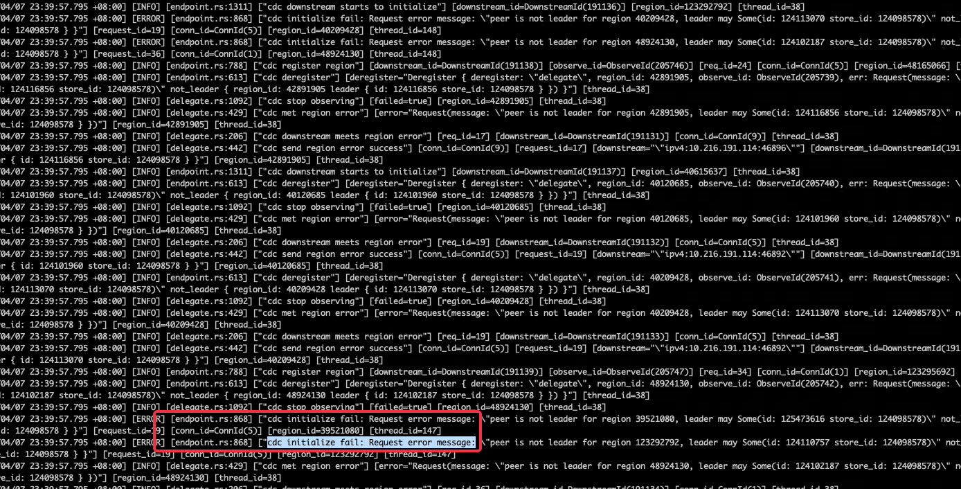 tikv日志报大量的 cdc相关的错误,我们确实也存在cdc服务,