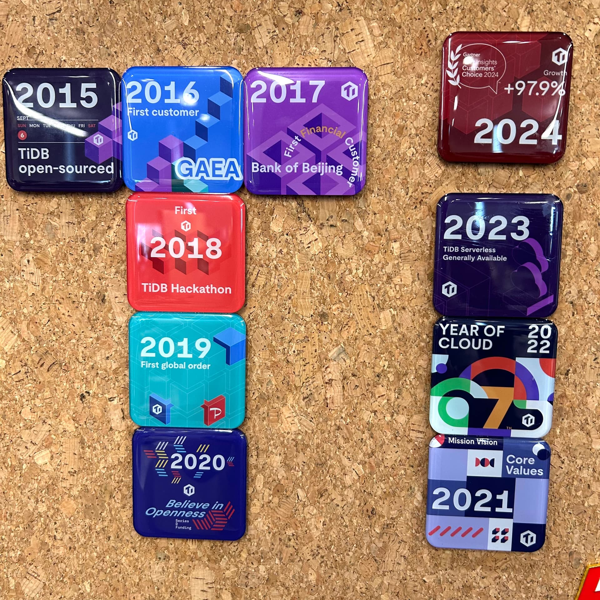 十年磨砺,锋芒初现。 回望过去十载,我们共同见证了 TiDB 如何在群星璀璨的数据库领域中,凭借不懈的努力与创新,绽放出属于自己的独特光彩。每一次对产品的精心打磨 ,每一次为功能迭代 付出的智慧与汗水,都凝聚成了 TiDB 今天健康坚实的技术架构 ,这离不开每一位 PingCAPer 的远见与付出。