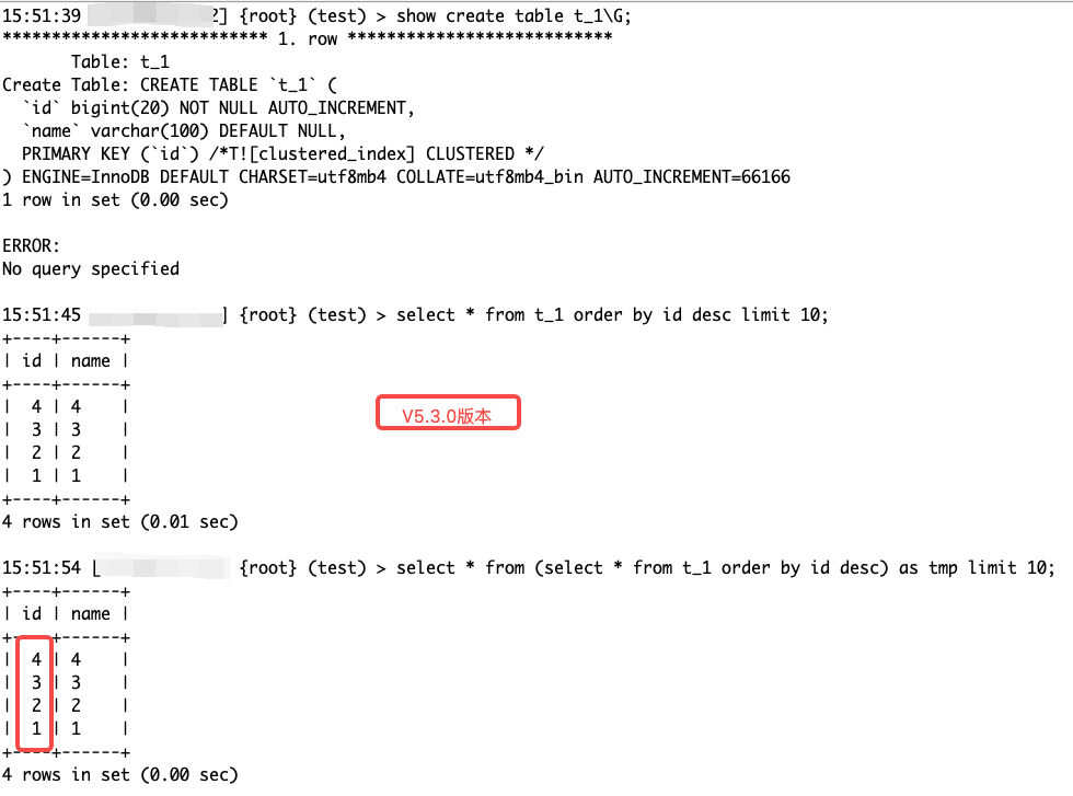 SQL1:select * from (select * from t_1 order by id desc) as tmp limit 10