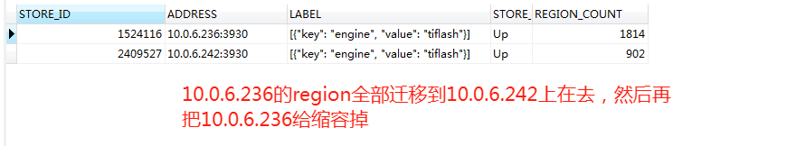 不过缩容后,记得把副本设置回1,不然在那一台tiflash会有2个副本,占用2份存储。