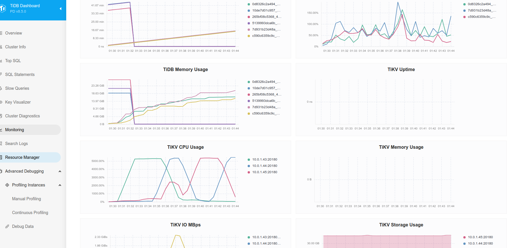 想请问一下大佬们,我有一个 TiDB 集群,包含 3 个 TiKV、3 个 TiDB 和 3 个 TiPD。在创建索引后,我为每个表创建了复合索引来优化查询,但 TiKV 的 CPU 使用率飙升至 5000%,并且成为瓶颈。有人能帮我看看发生了什么吗?就在创建索引后,我有大约 80+ 个表,包含数百万条记录。