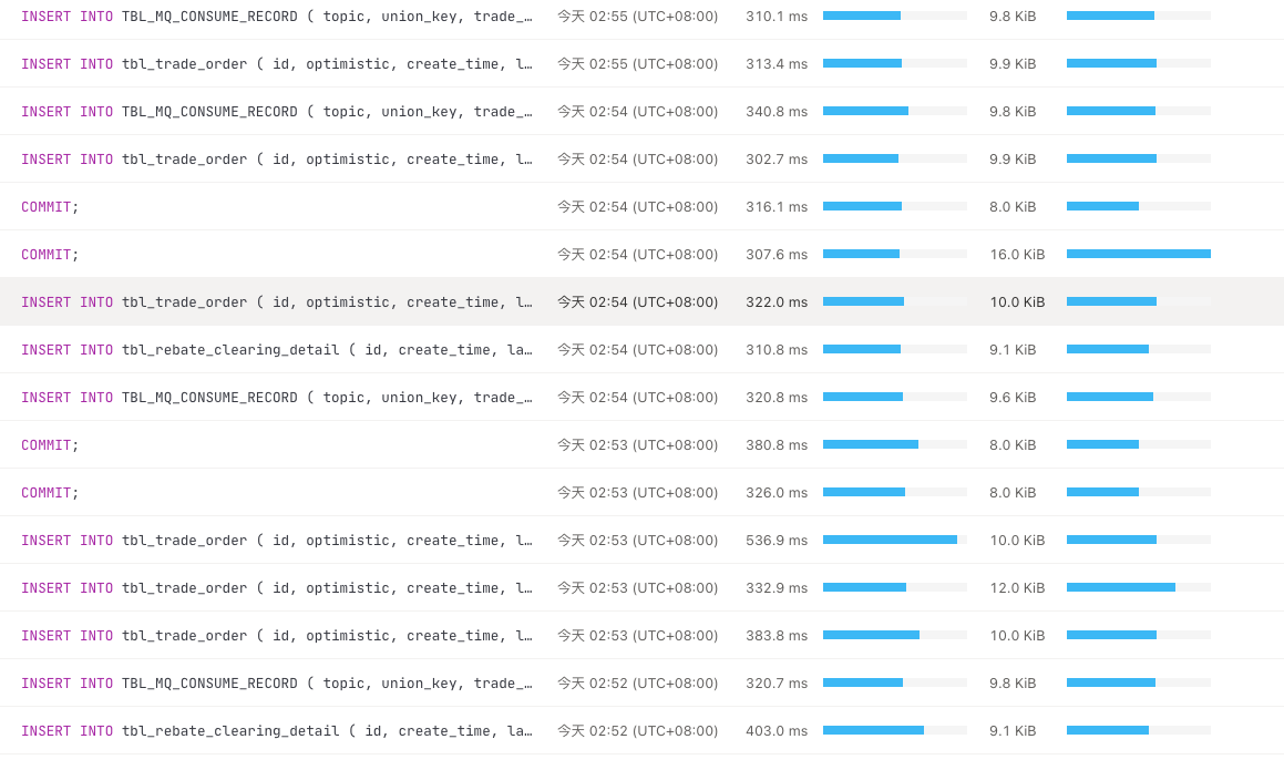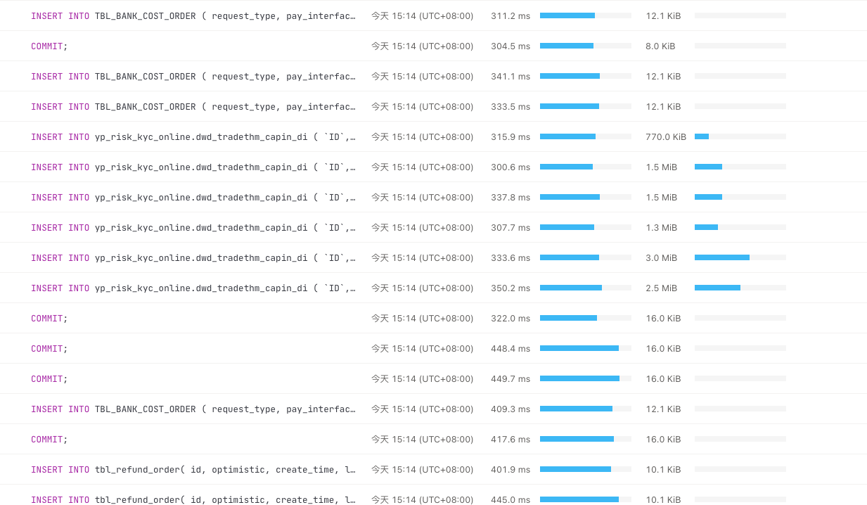 集群出现很多简单sql执行慢,示例为insert语句的慢日志明细,事务模式:悲观模式