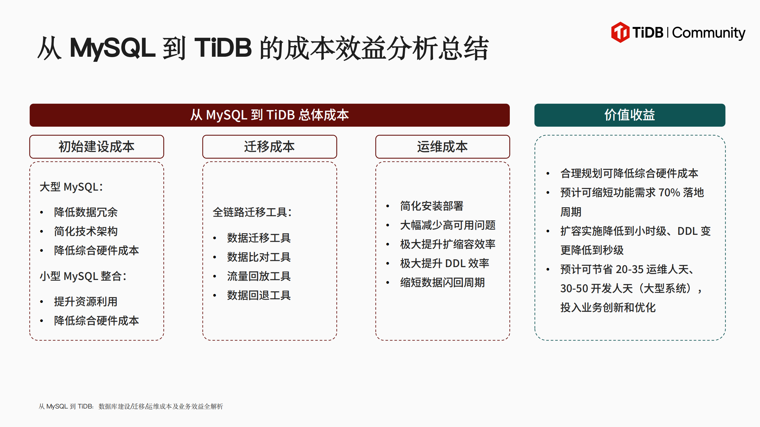 TiDB vs MySQL Meetup 第三期:从 MySQL 到 TiDB:数据库建设成本及业务效益全解析-汤博文老师.pdf (5.9 MB)