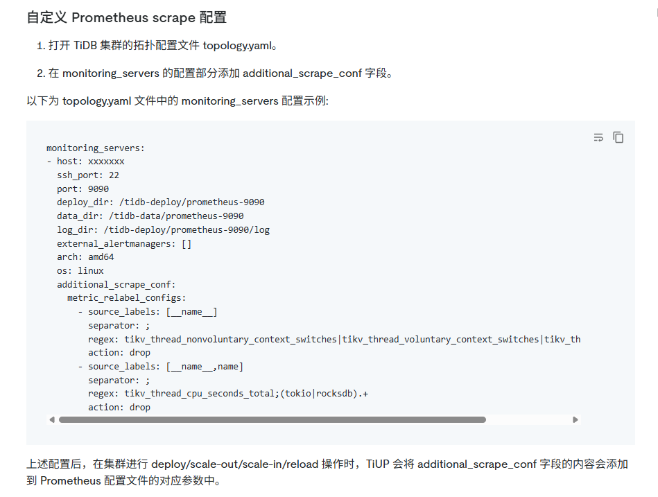 一般都是tidb的promethus搞到外部的组件上,很少外部的监控搞到tidb上来吧 ![]()