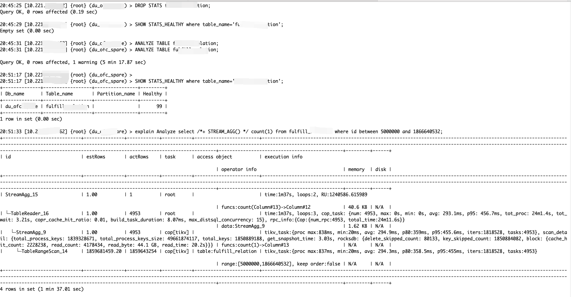 最近在做版本升级,同样一个SQL,在5.3.3版本上执行,第一次很慢,第二次很快。但在7.5.6版本上,第一次执行很慢、第二次依然很慢。而且7.5.6版本的tikv数量更多。理论上7.5.6版本走 HASH_AGG,这个算法多线程并发执行,执行速度更快,但会消耗较多内存。