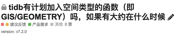 有的,很强烈的需求,我们现在的gis服务强依赖于pg的postgis空间计算能力,我们项目的国产化替代方案可能因为tidb不支持gis而无法考虑tidb的方案