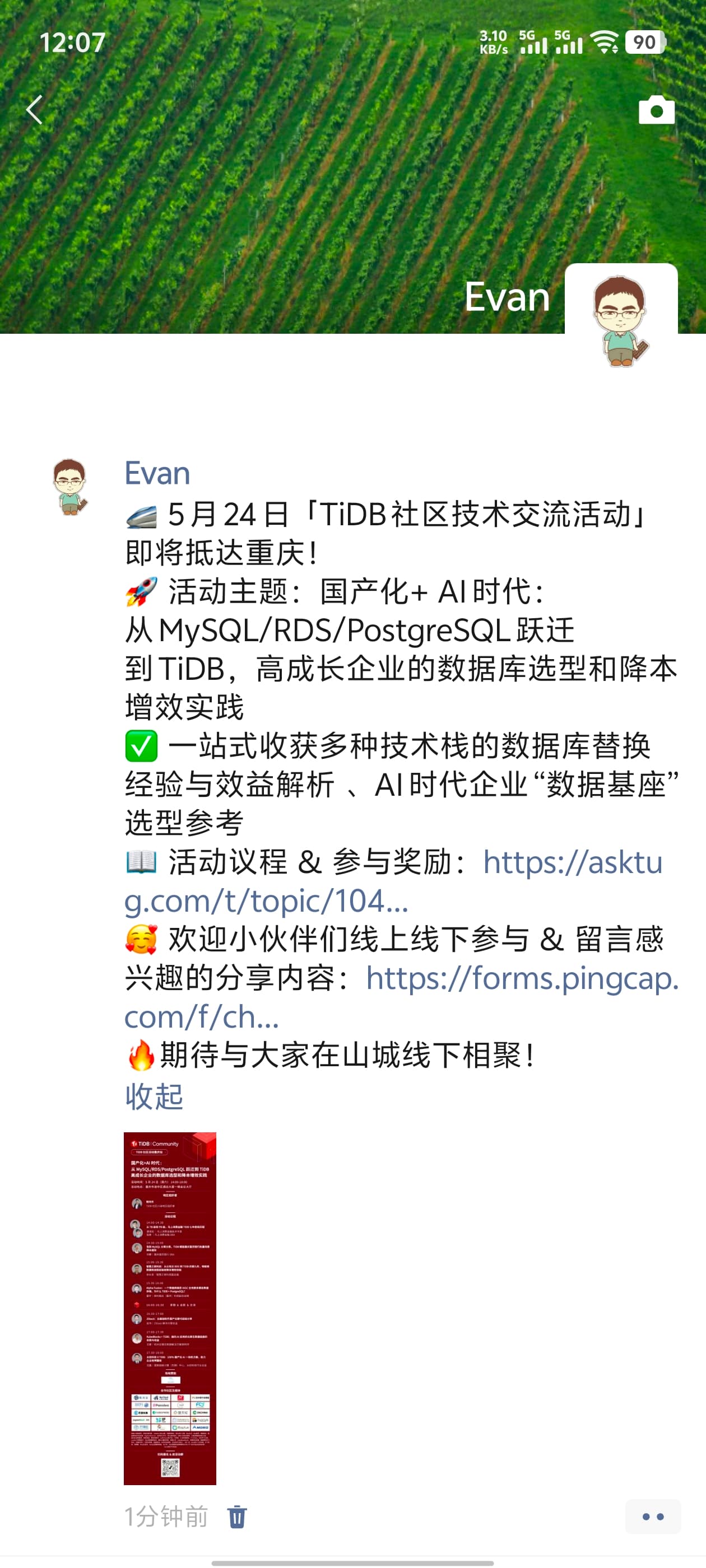 主要使用的Mysql、Sqlserver,目前项目遇到信创要求,正在尝试使用Tidb替换。