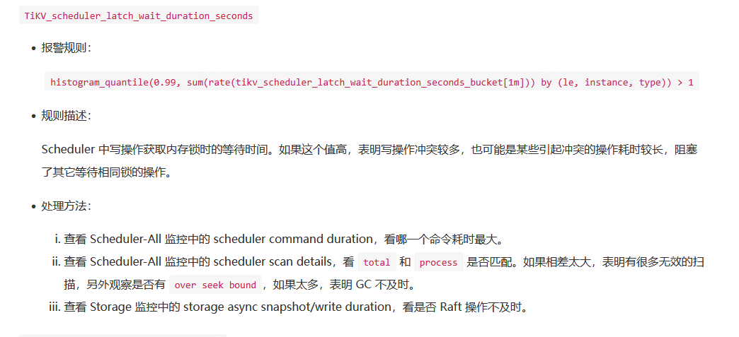 最近半个月反复触发TiKV_scheduler_latch_wait_duration_seconds告警,跟业务确认,业务侧没任何改动变更。