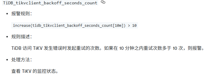 【遇到的问题:问题现象及影响】 大佬们监控中的这个值 increase( tidb_tikvclient_backoff_seconds_count[10m] 设置的多少? 每半小时会有批量写入的场景。