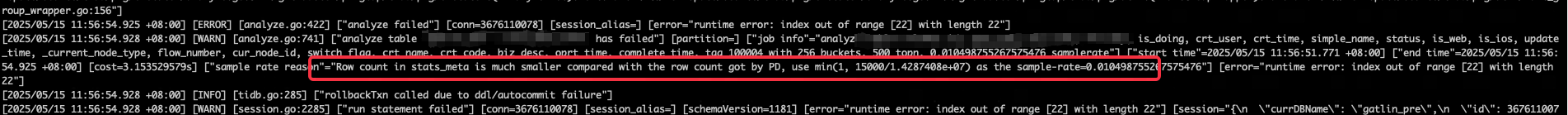 手动执行一个表的统计信息发现执行异常,日志报错如下:(确认没有锁定统计信息,也没有长事务)