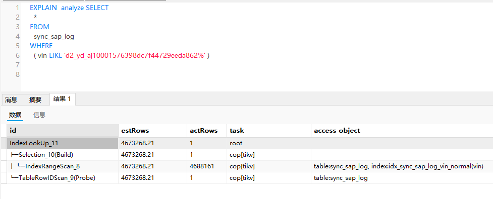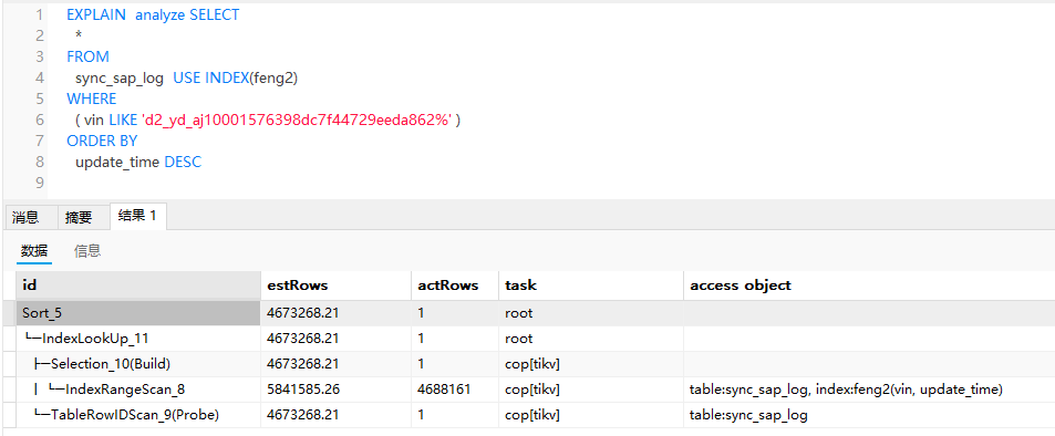 根据描述,可以确认的是TiDB的执优化器对于这个SQL的执行计划的理解,和我们预期的不一致。