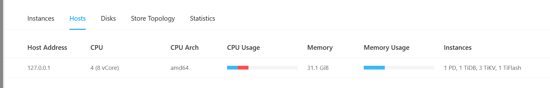 【资源配置】进入到 TiDB Dashboard -集群信息 (Cluster Info) -主机(Hosts) 截图此页面