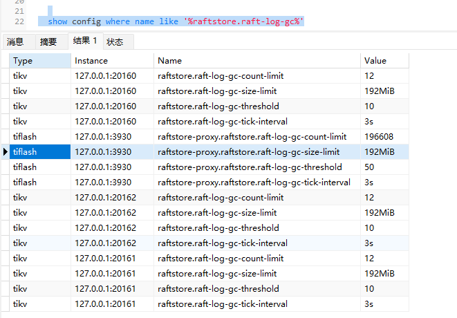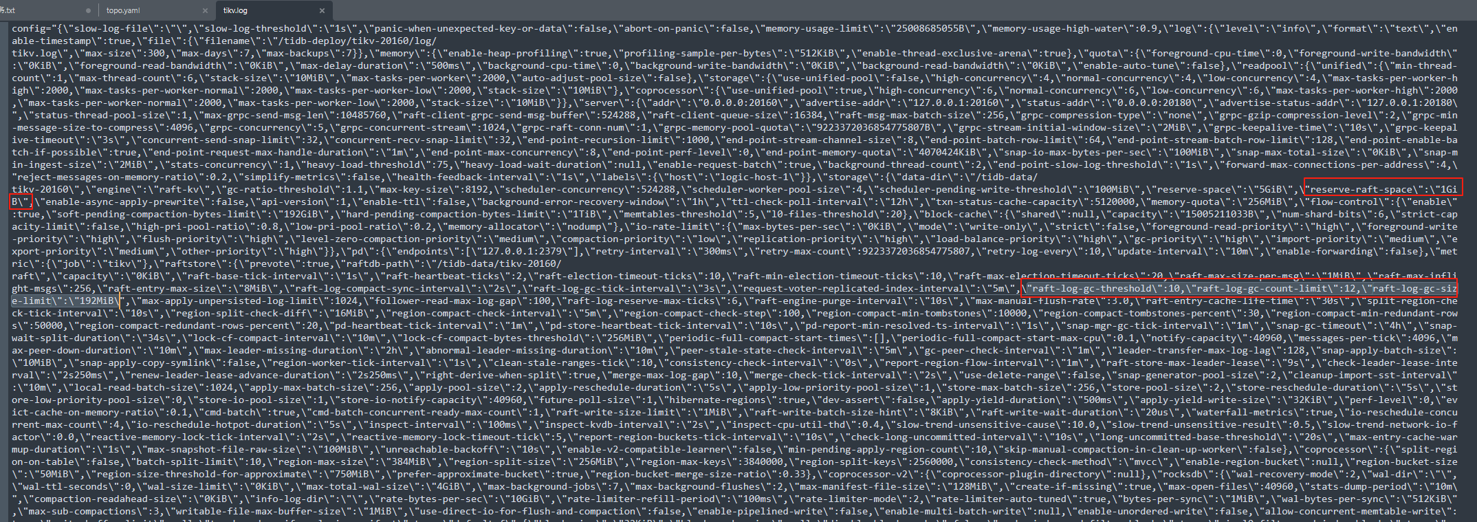 配置了raftstore.raft-log-gc-threshold 和raftstore.raft-log-gc-count-limit 重启集群以后没有效果