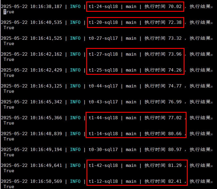 图中sql18是配置了QUERY_LIMIT的sql,集群无压力的情况下,正常执行一次1.7s,在压测上来时,执行时间超过QUERY_LIMIT配置的60s,却还在执行;