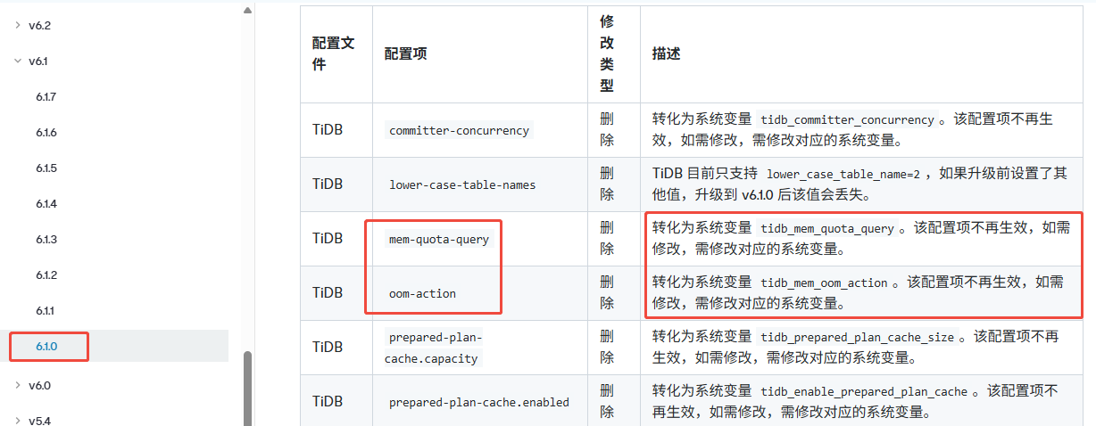 这个配置项在v6.1.0的时候就删除了,改成系统变量了。现在要修改系统变量。