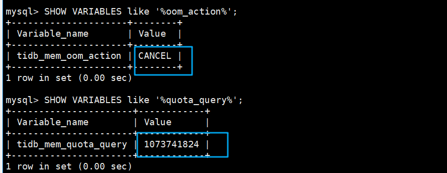 SET GLOBAL tidb_mem_oom_action = 'LOG';