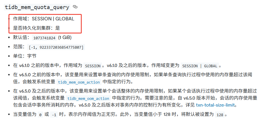 https://docs.pingcap.com/zh/tidb/v6.5/system-variables/