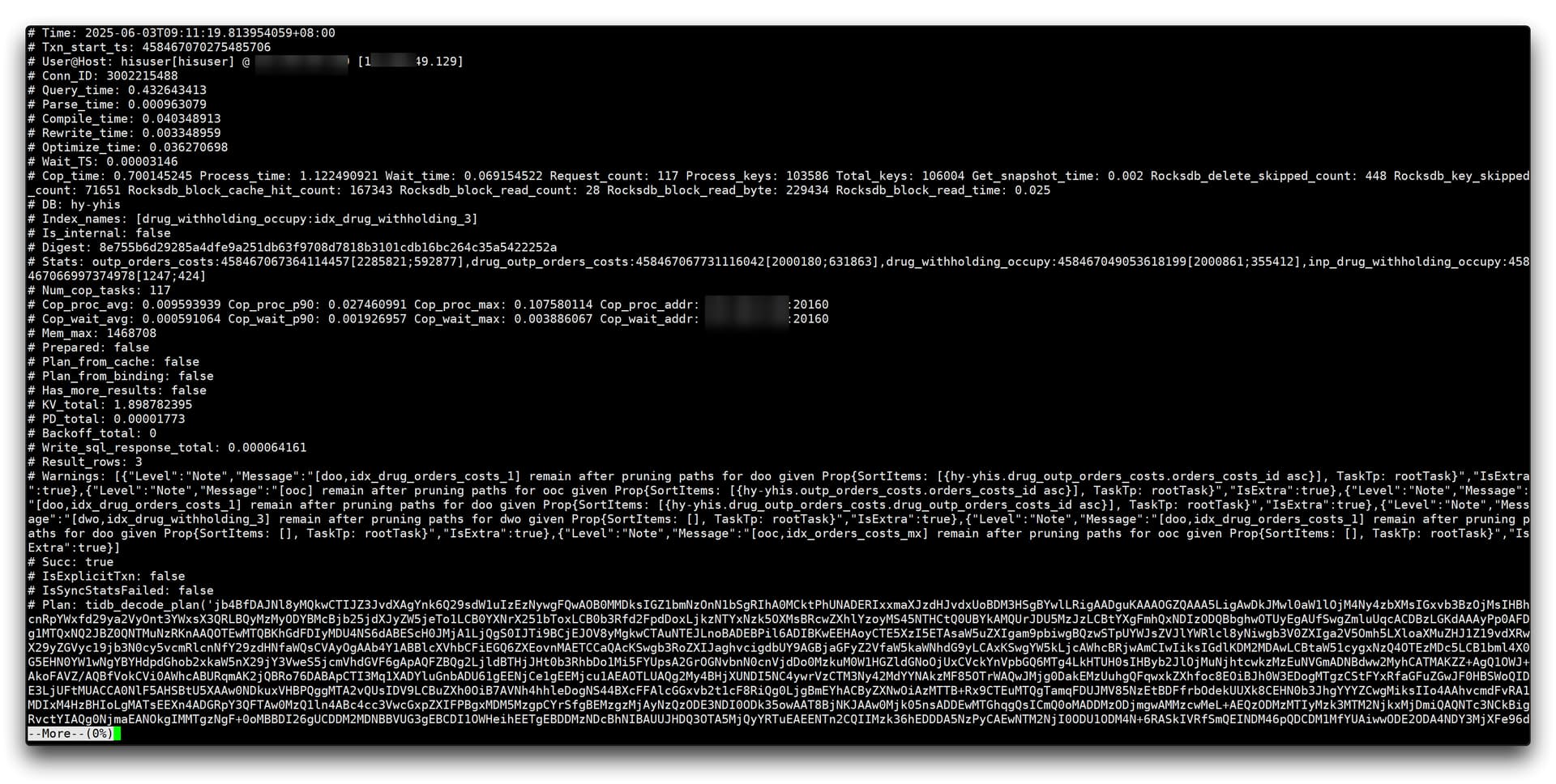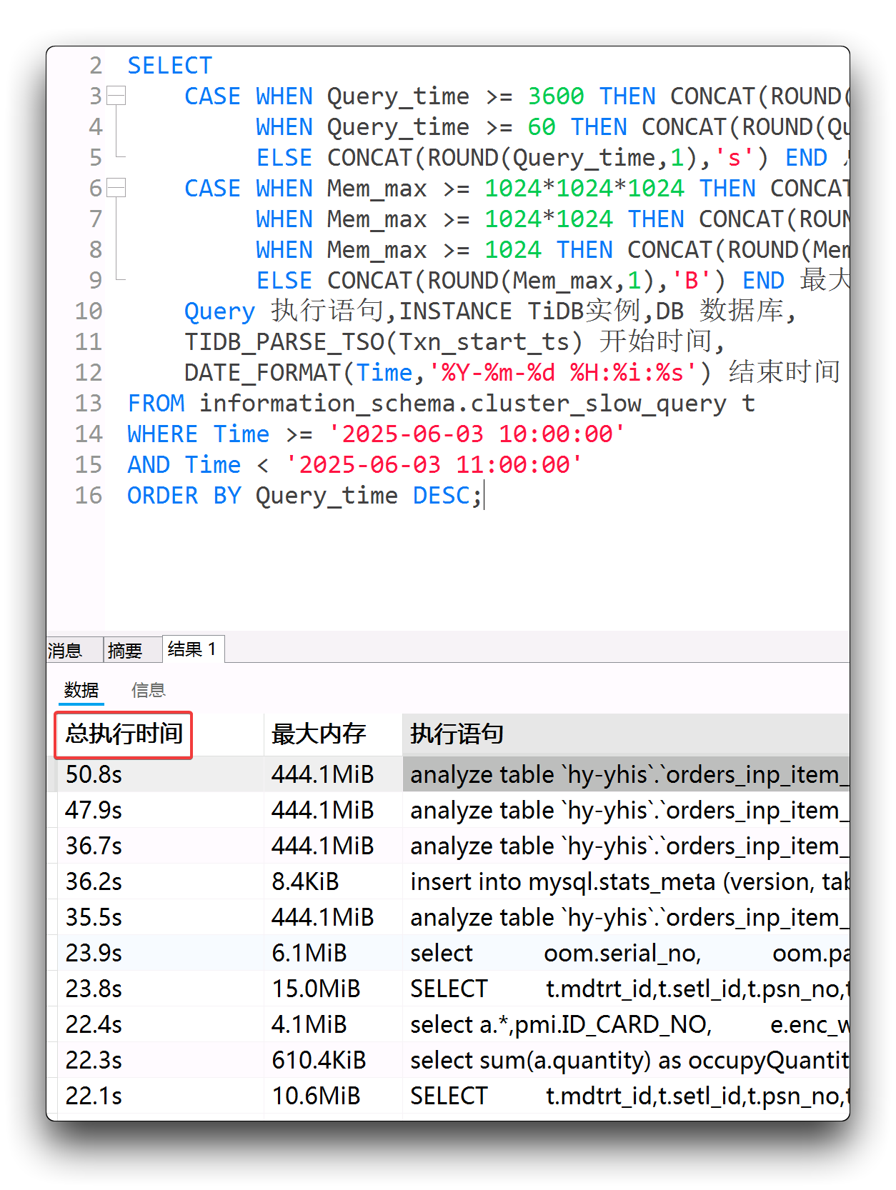 tidb 有官方监测工具,可以看到慢SQL查询记录,还可以查看高频sql记录
