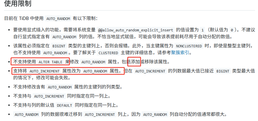 https://docs.pingcap.com/zh/tidb/stable/auto-random/#使用限制