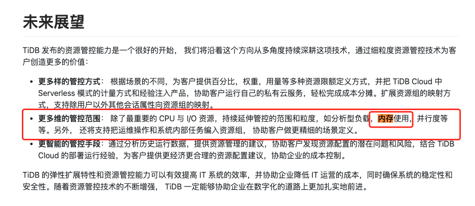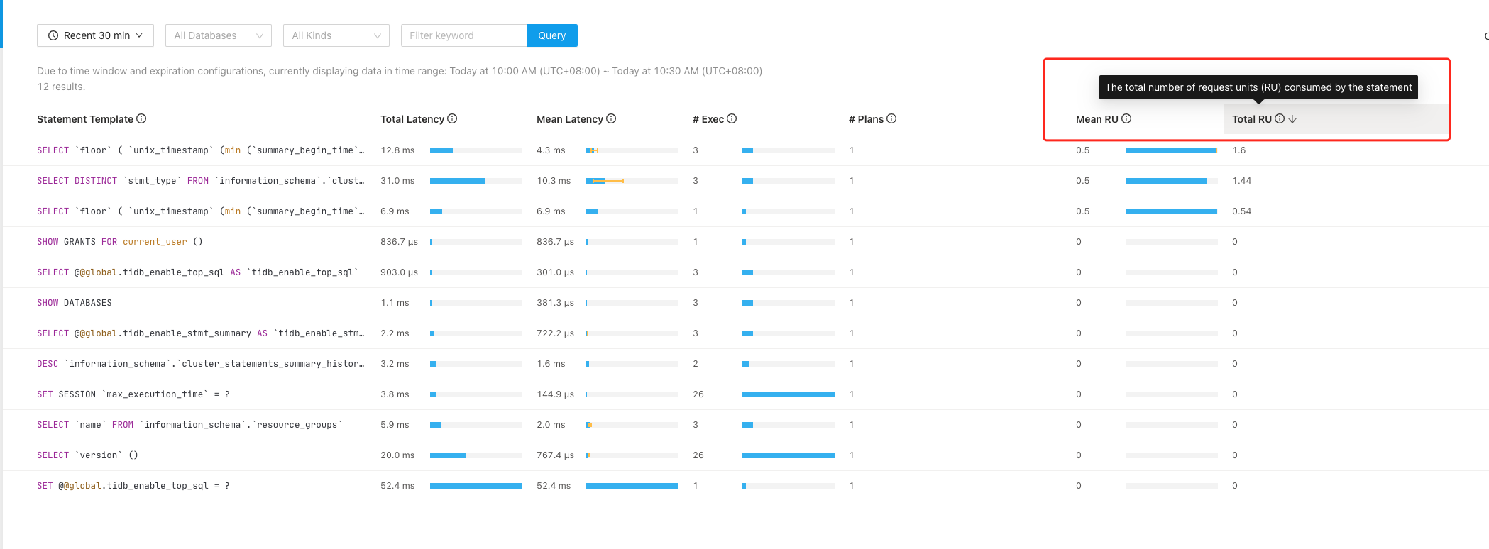 我能理解你说的了,是我搞混了概念,RU是速率限制问题,时间越长,消耗的总RU越多;但是我还有个问题,这样限制了RU,当我执行这条SQL的时候,tidb的内存异常高,这是不是也侧面说明,我这个RU设置的还是不对,设置的太大了? ![]()