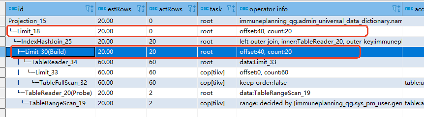 40, 20 语句如下,在8.5.1版本下是查询不出数据,通过和其他版本的执行计划对比如下: