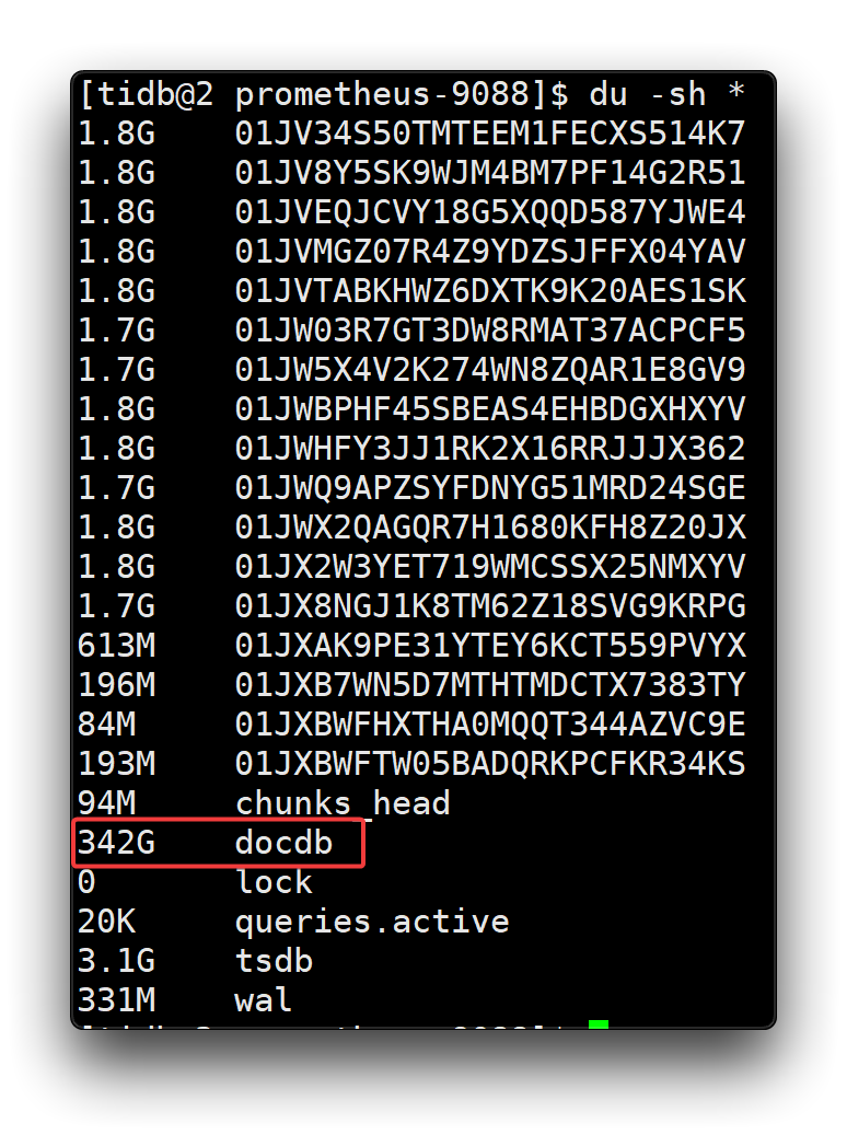 docdb过大,可以参考这篇帖子处理tidb 监控主机prometheus-8249 目录下的数据目录里面有一个docdb占用空间很大,如何清理 - #4,来自 buddyyuan