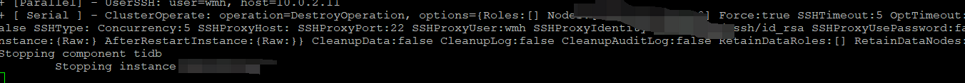 执行tiup cluster scale-in prod-cluster -N ip:4000–force 时,会卡在 stopping instance阶段,如图