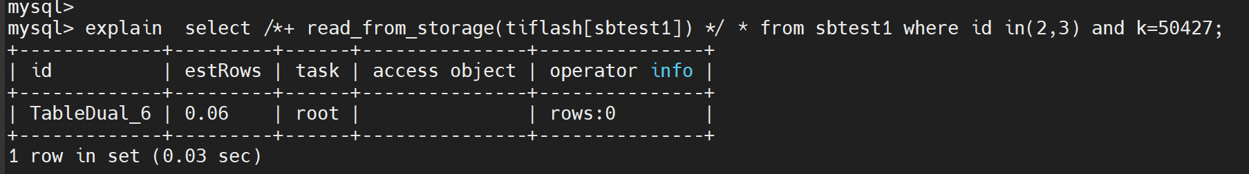 触发条件 point_get/batch_point_get + 使用hint /+read_from_storage(tiflash)/