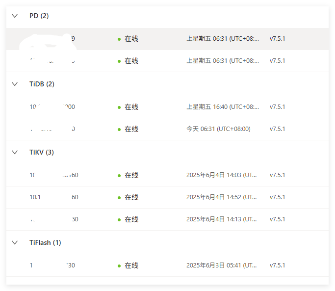 【资源配置】进入到 TiDB Dashboard -集群信息 (Cluster Info) -主机(Hosts) 截图此页面