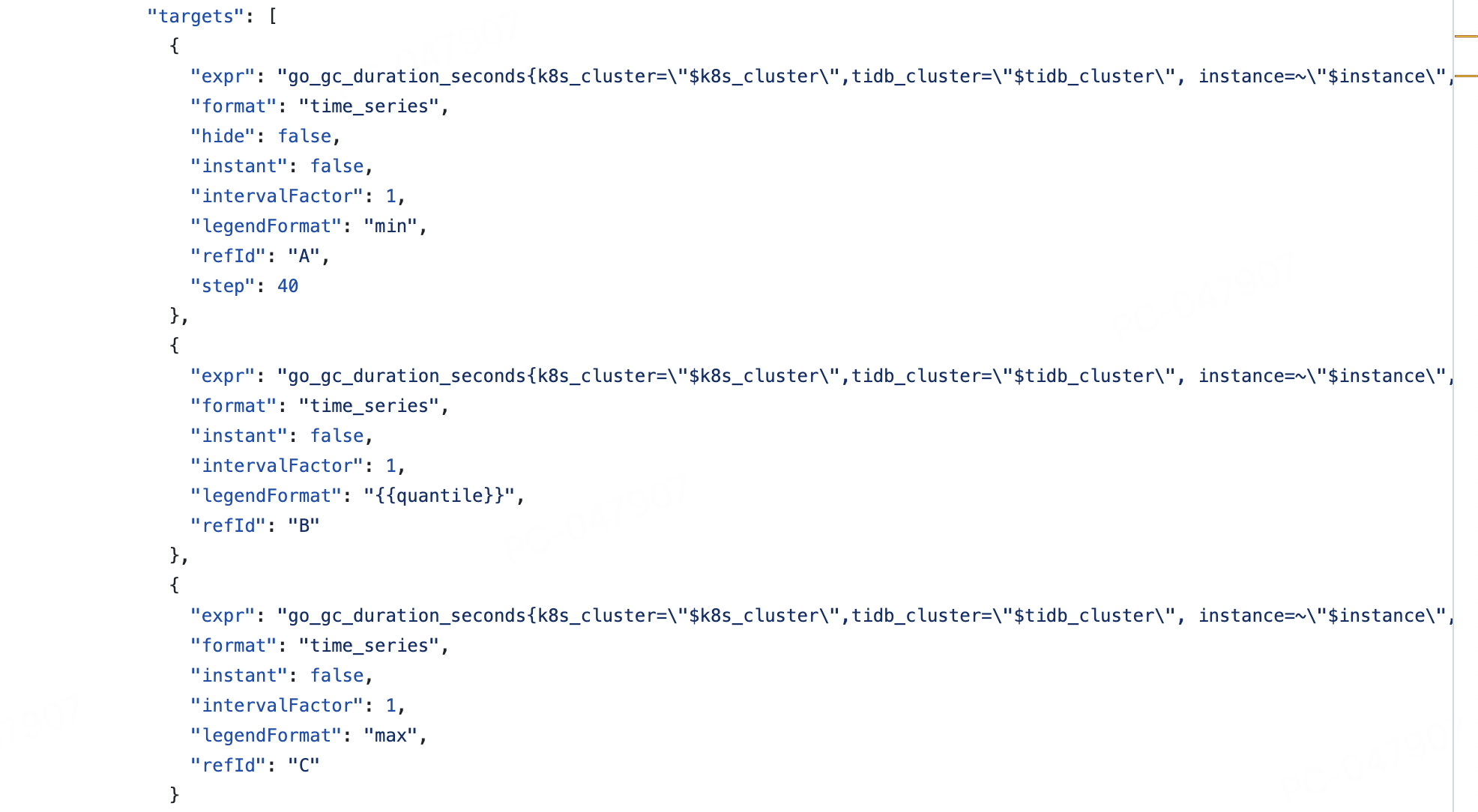 我们之前的 dashboard没有这个,我照着 tidb/pkg/metrics/grafana/tidb_runtime.json at v7.5.4 · pingcap/tidb · GitHub 配置了一下,如下图: