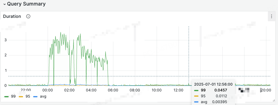 这是一天的 duration,P99都是没超过100ms的(凌晨是因为备份导致,可以忽略)