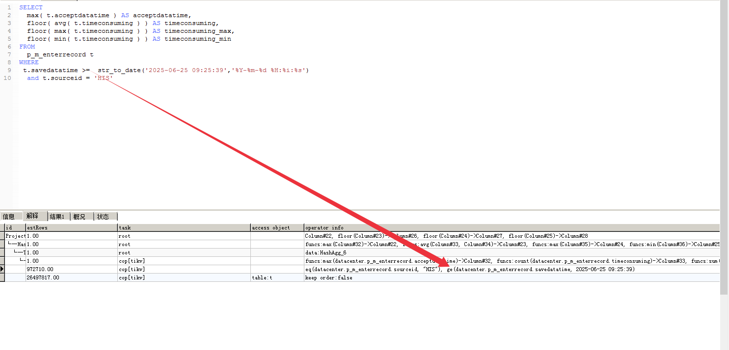 查询SQL分析截图: