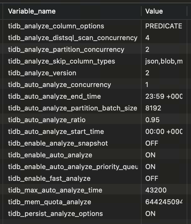 突然想起来,我们这边有500+张表的健康值低于50(这其中大半健康值为0),因为会频繁auto_analyze,所以有次优化把tidb_auto_analyze_ratio调整为0.95了。
