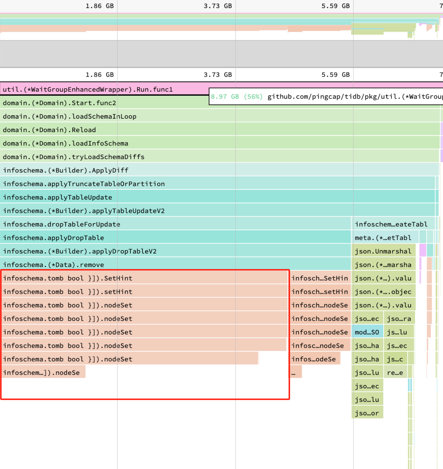 我判断你这个问题和这个issue相关,主要是你之前发的帖子里面提到有频繁的ddl,所以我怀疑你的information_schema下的元数据会比较多。如果对这些数据做扫描,极有可能触发这个bug。不过这个推断目前还没有得到你的证实。