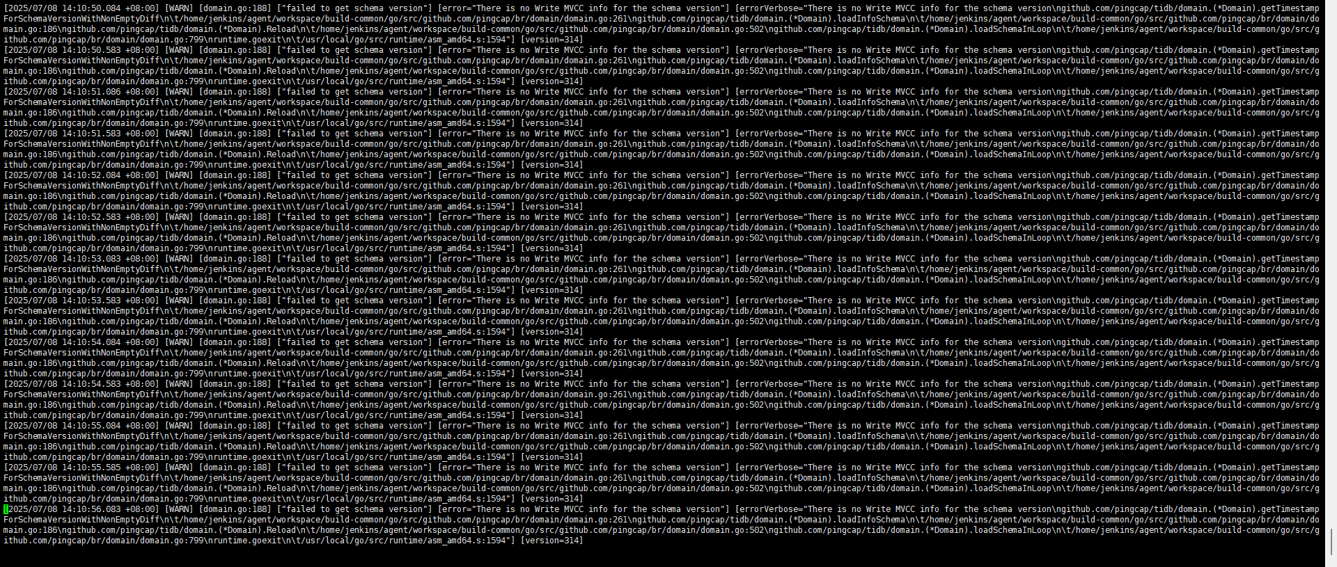 [2025/07/02 14:51:36.283 +08:00] [INFO] [info.go:49] [“Welcome to Backup & Restore (BR)”] [release-version=v6.6.0] [git-hash=f4ca0821fb96a2bdd37d2fb97eb26c07fc58d4e4] [git-branch=heads/refs/tags/v6.6.0] [go-version=go1.19.5] [utc-build-time=“2023-02-17 14:40:21”] [race-enabled=false]