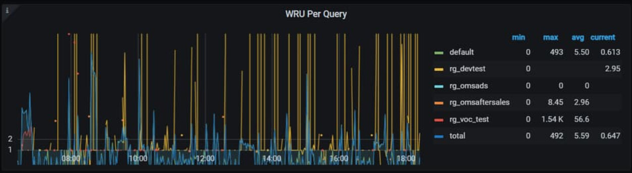;其次,为啥我的dashboard里RU Per Query和RRU Per Query只有total总数,没有按每个资源组统计的信息