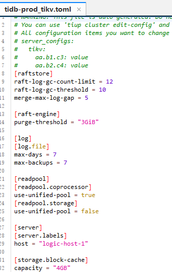 这个参数没有用,你感觉tikv占用大storage.block-cache.capacity参数再调小点