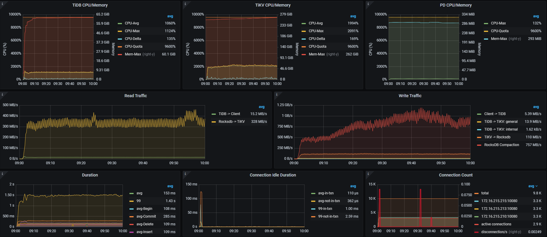 用 TPC-C压测过一个小时,感觉资源利用率都在一半左右,截图如下,不知道该怎么调整