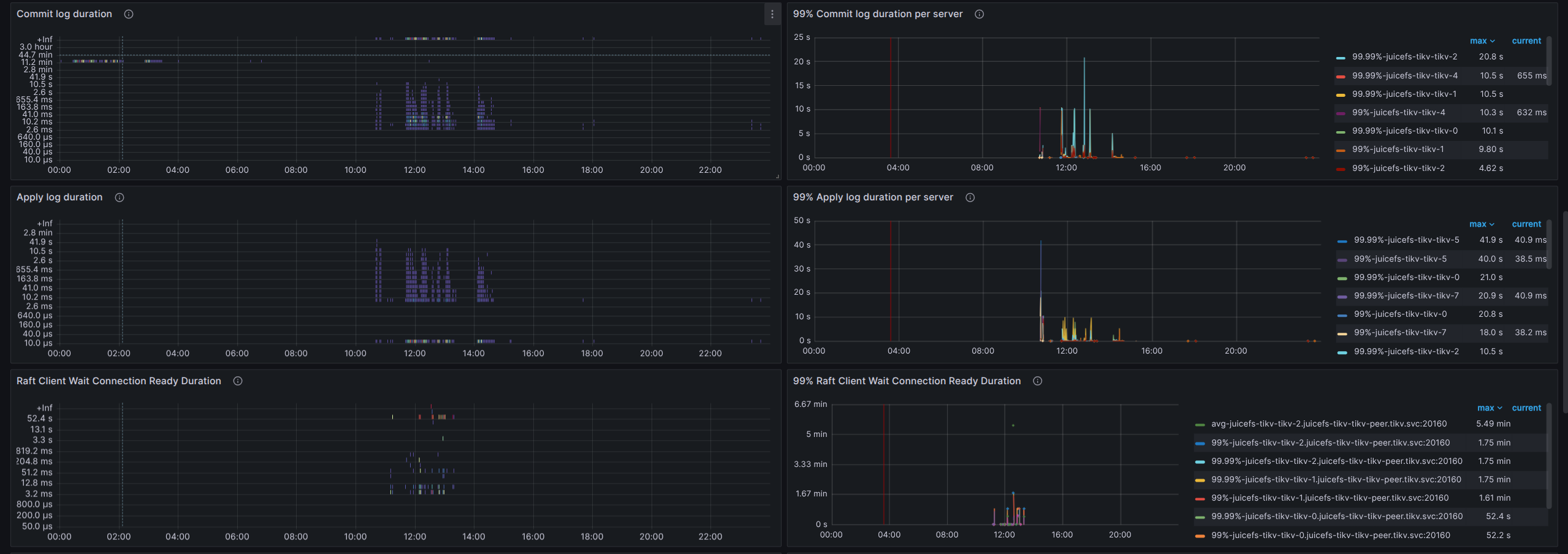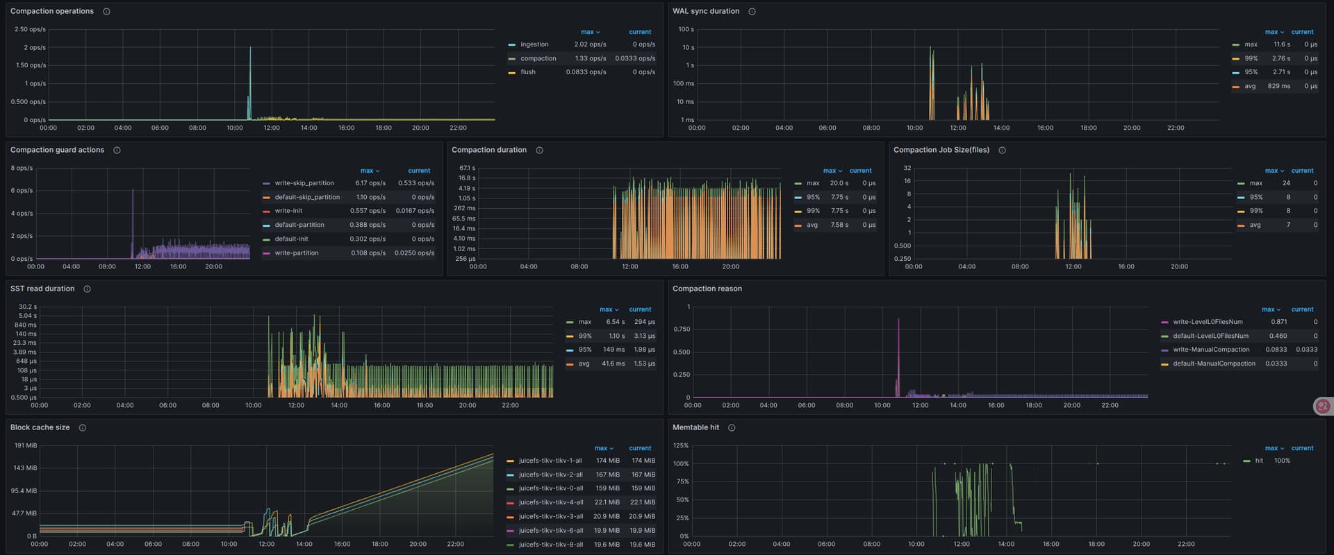 tikv持久化使用的是ceph rbd,在压测juicefs时候,tikv作为meta的lat略高,会影响到读写性能,使用k8s部署了10节点的tikv和3节点的pd,tikv的每个pod的limit在20c、40G内存的情况,还是会出现lat高的问题,版本是7.1