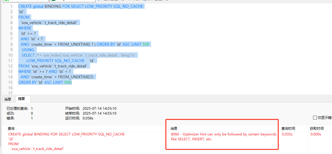 SELECT /+ use_index(soa_vehicle.t_track_ride_detail, feng)/