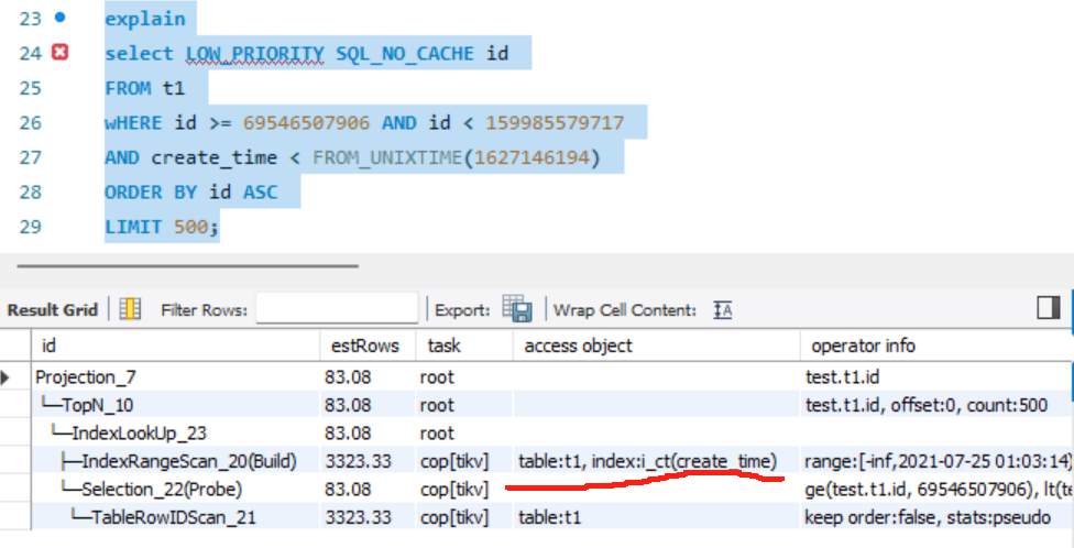 AND create_time < FROM_UNIXTIME( ? ) ORDER BY id ASC LIMIT 500