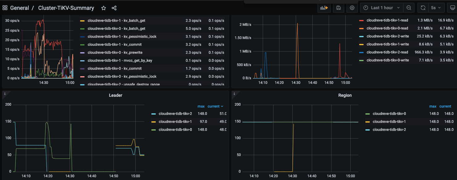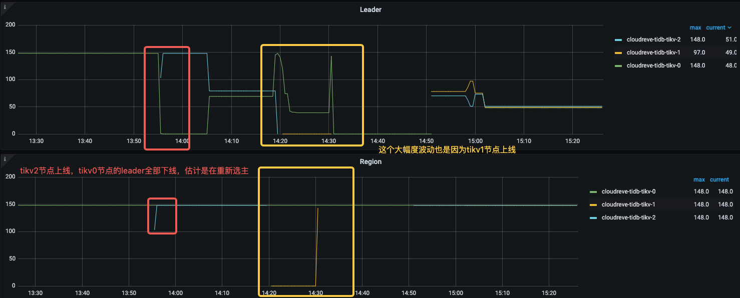 另外你看这段时间的tikv的region也不正常,应该时有个tikv节点一点数据都没获取到。。。明显线的颜色比14:50后面要浅一点