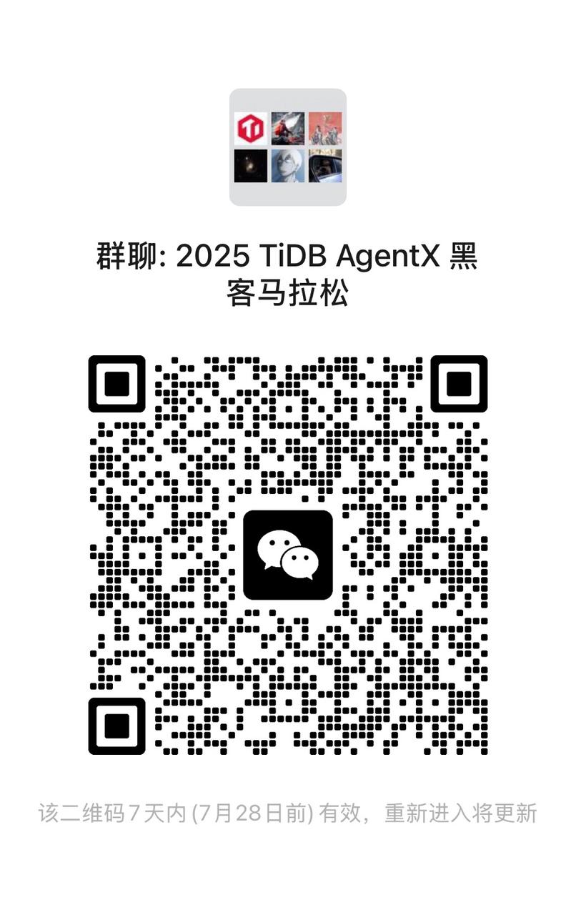 如果群二维码过期,请扫码添加 TiDB Robot 微信(tidbai),邀您进 TiDB Hackathon 2025 活动微信群!