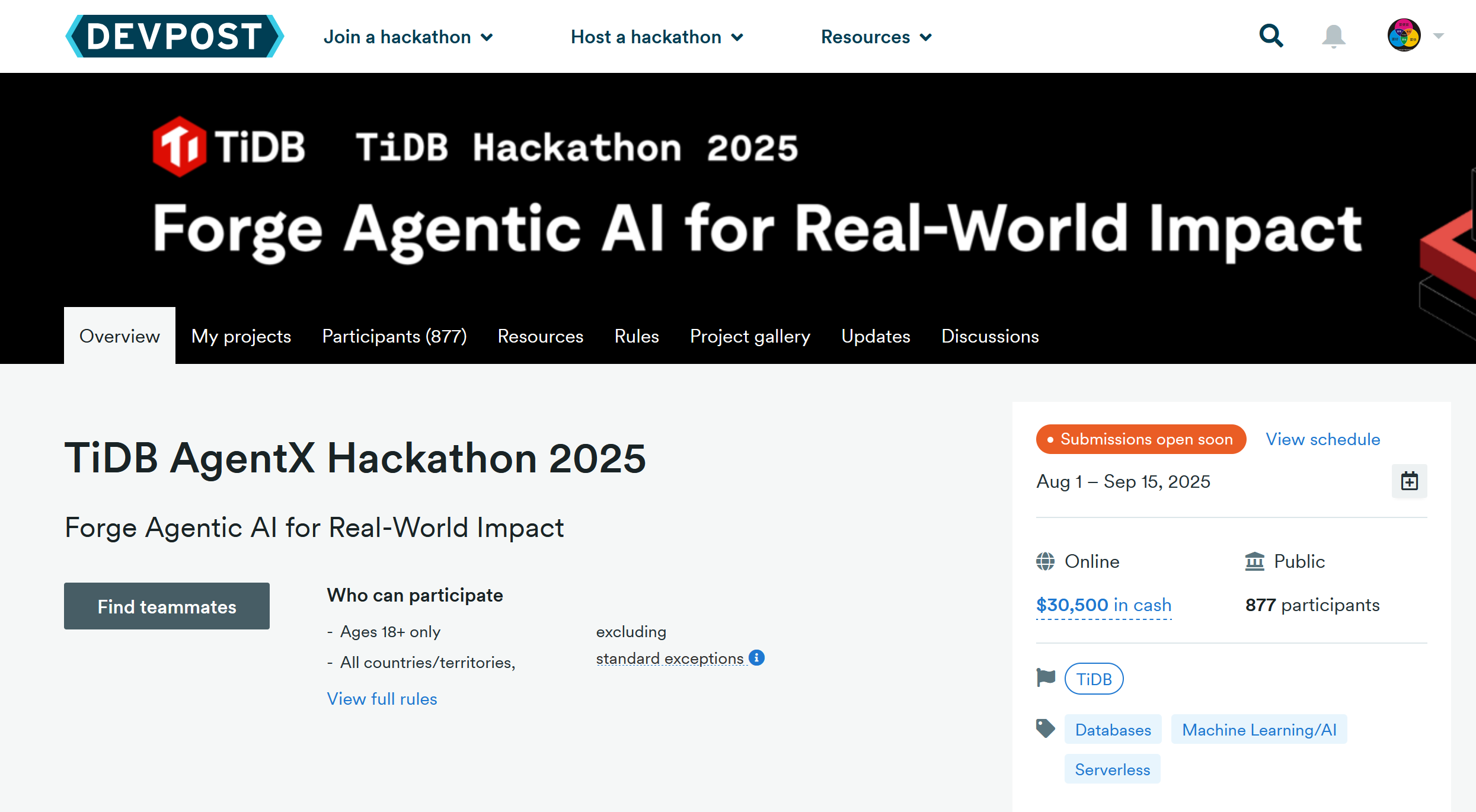 注册 Devpost 账号并报名 Hackathon