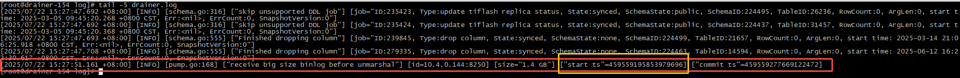 第二天,数据库自动GC掉前一天的操作,drainer不再尝试写入bigsize的binlog,服务恢复正常