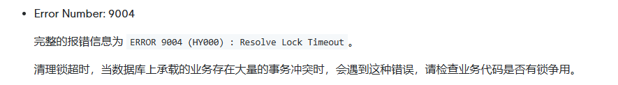 报错信息:[Err] 9004 Resolve lock timeout。基本情况:测试环境,没有任何事务,研发已经将所有应用停止,进程上也看不到任何应用的进程,没有函数存储过程。