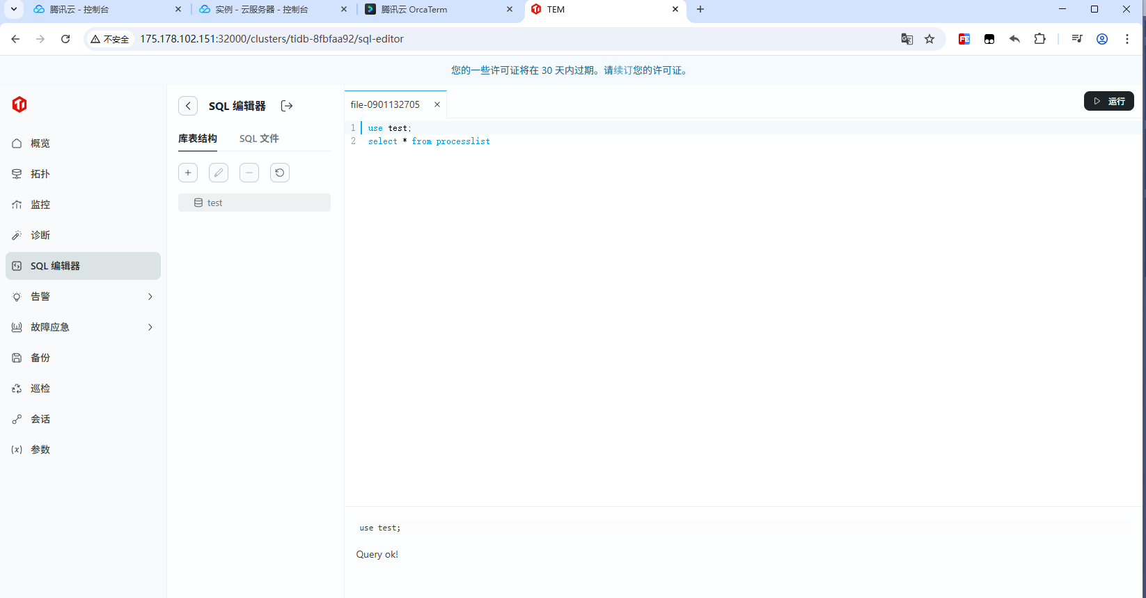 TEM还是比较好用,有备份、监控、SQL编辑,在SQL编辑上有待提升,在执行SQL前都要先use xxx库,不知道是不是我使用没对。