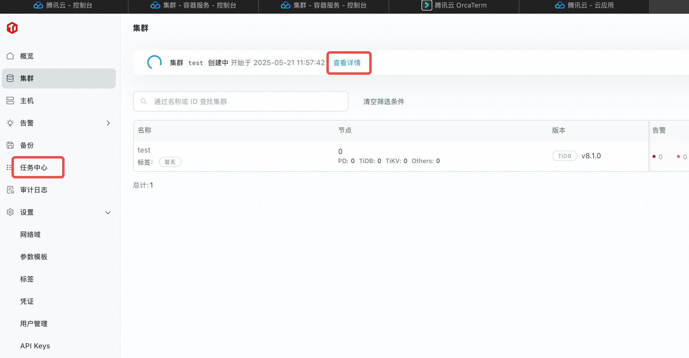 创建过程可点击 “查看详情”,或在 “任务中心” 查看